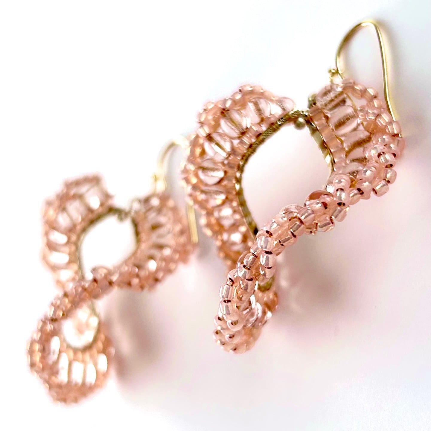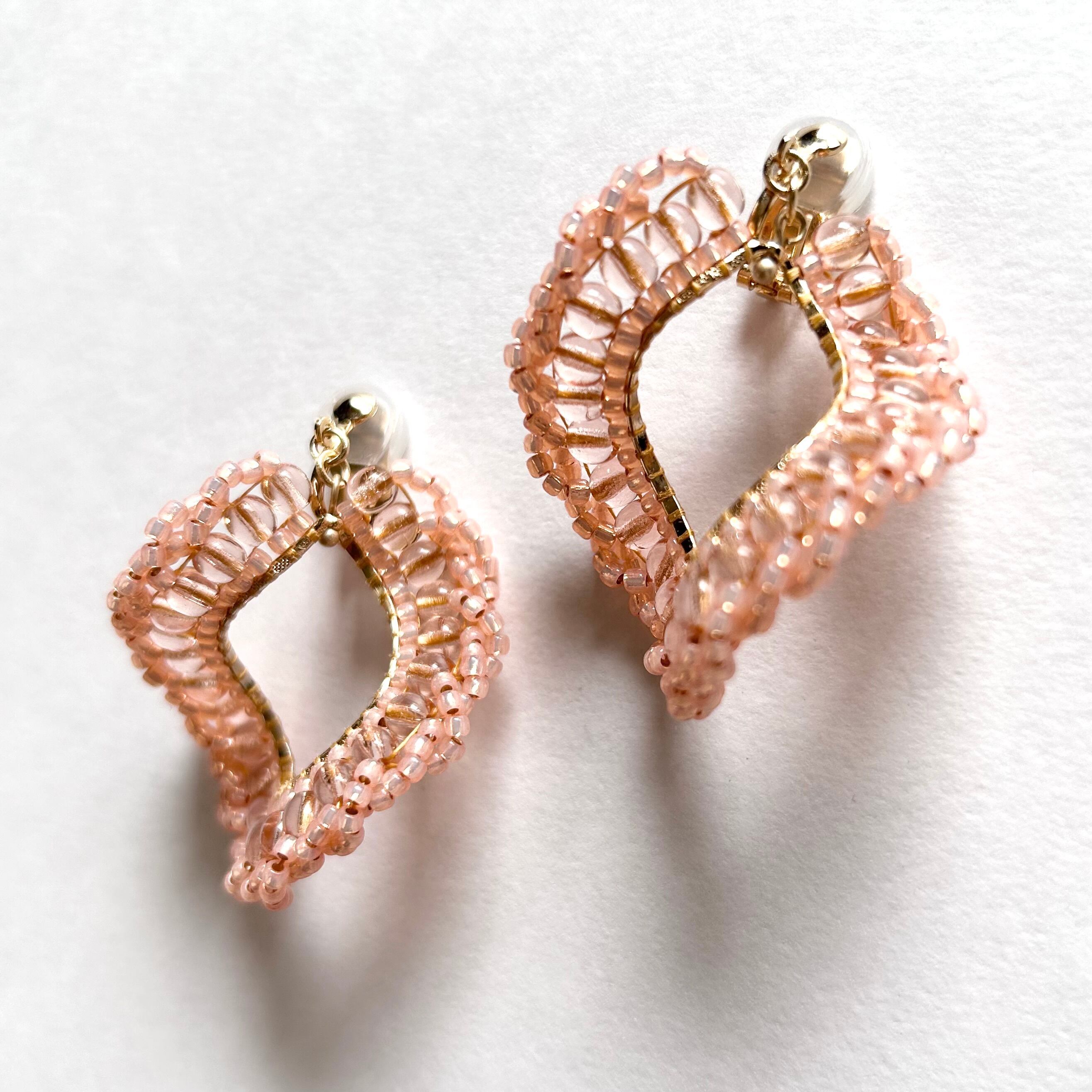 春の訪れを感じる花びらデザインのピアス。くるくると回り風に舞うように表情を変えます。瑞々しいピンクカラーで耳元を華やかに彩ります。