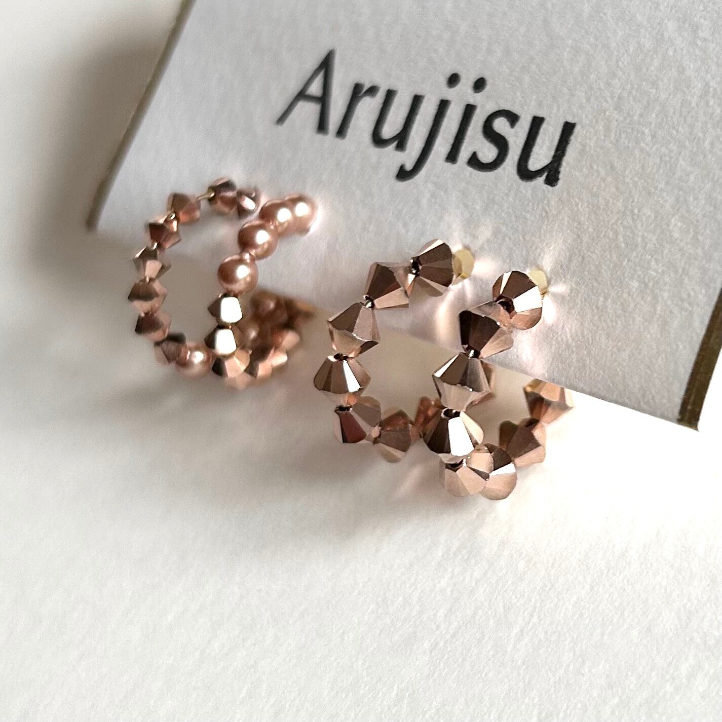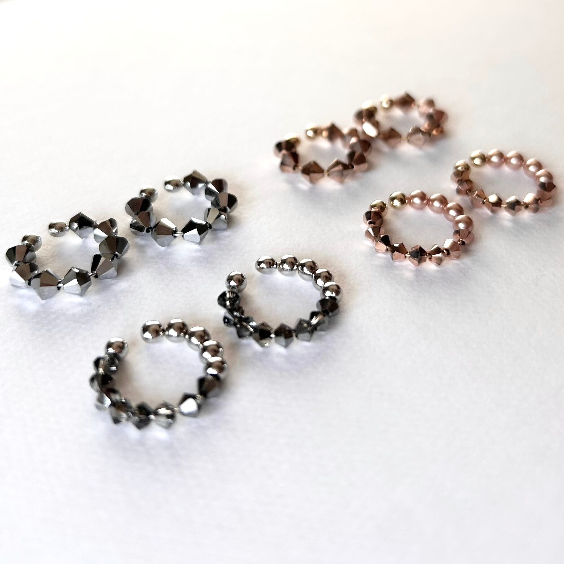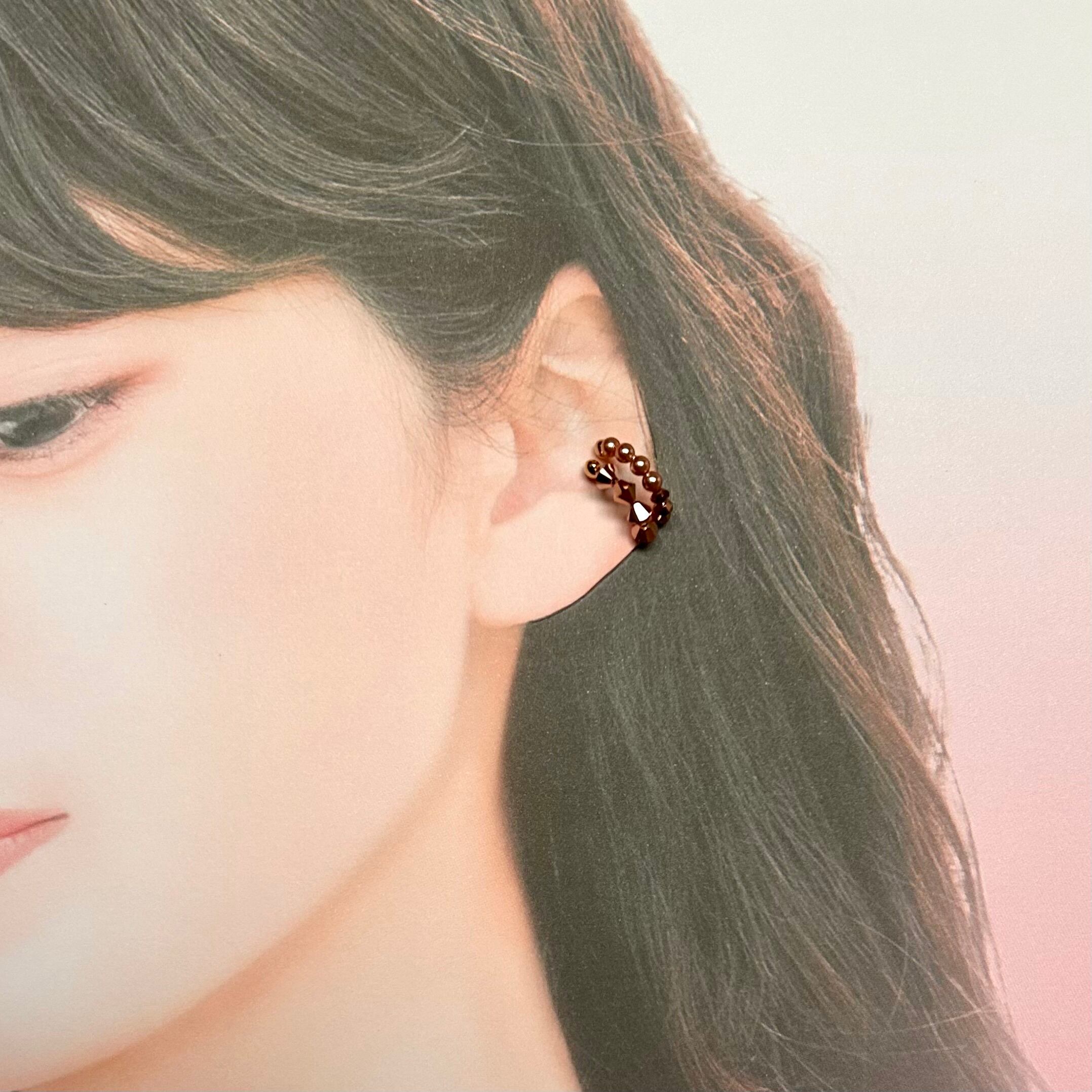 洗練されたジュエリー感漂うイヤーカフ。鏡面加工が施されたオーストリアクリスタルが光を乱反射させ、さり気なく華やかさを演出します。